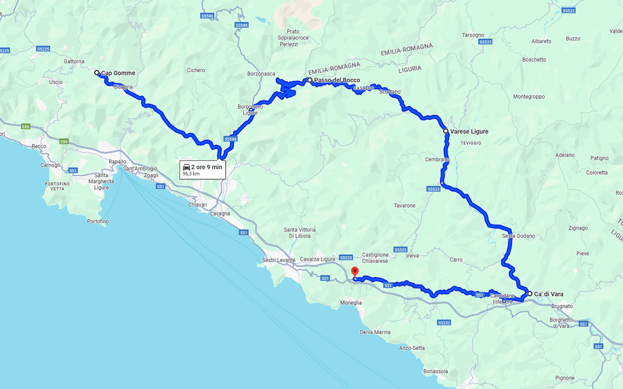 MOCONESI->BRACCO san colombano, passo del bocco, scurtabò, varese ligure, ca di vara, passo del bracco fino al camping l'oasi (100% asfalto)