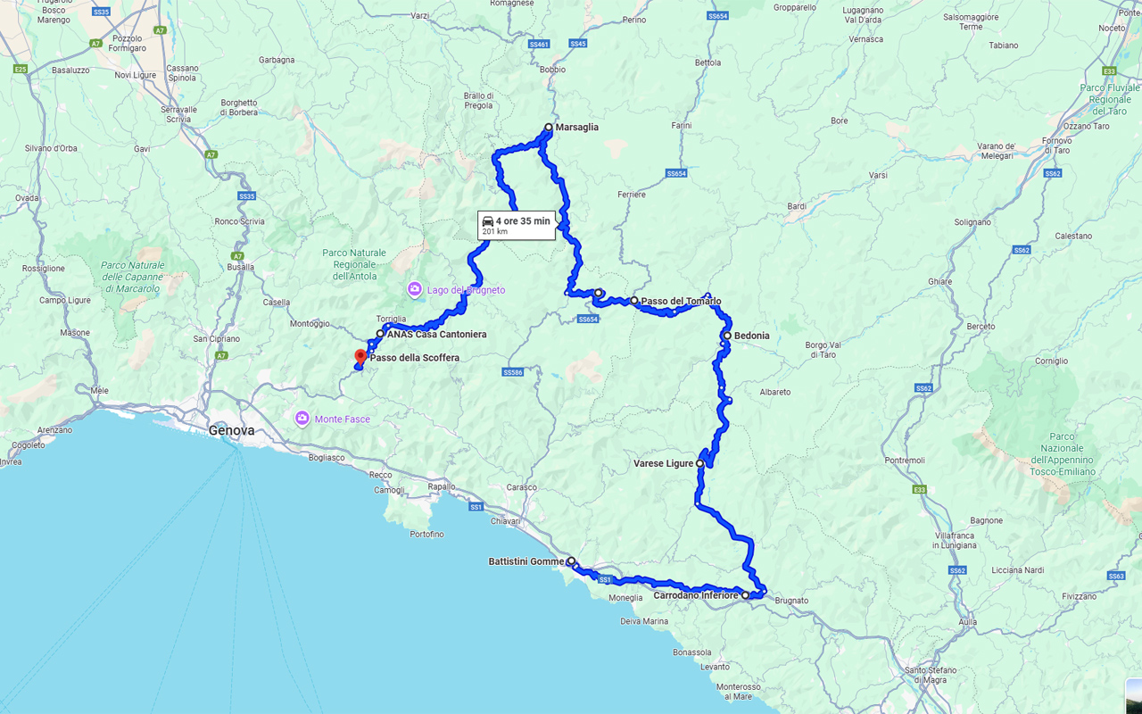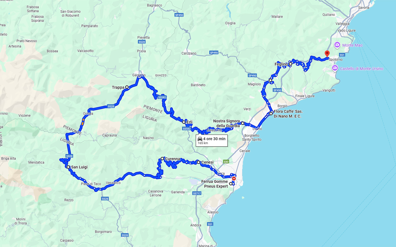 ALBENGA->SPOTORNO cenesi, curenna, pieve di teco, ormea, garessio, balestrino, loano, tovo s. giacomo, calice ligure, feglino (100% asfalto)